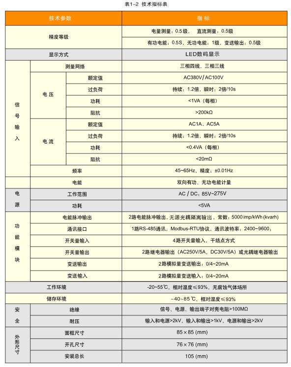 多功能電力監(jiān)測儀表是一種具有可編程測量,綜合顯示三相電參量、電能計量、數(shù)字通訊功能于一體的智能化儀表。能夠完成電量測量、電能計量、數(shù)據(jù)顯示、采集及傳輸,可廣泛應(yīng)用于變電站自動化、配電自動化、智能建筑、企業(yè)內(nèi)部電能計量、管理、考核。測量精度為0.5S級,實現(xiàn)現(xiàn)場顯示和遠程RS-485數(shù)字接口通訊、采用Modbus-RTU通訊協(xié)議。